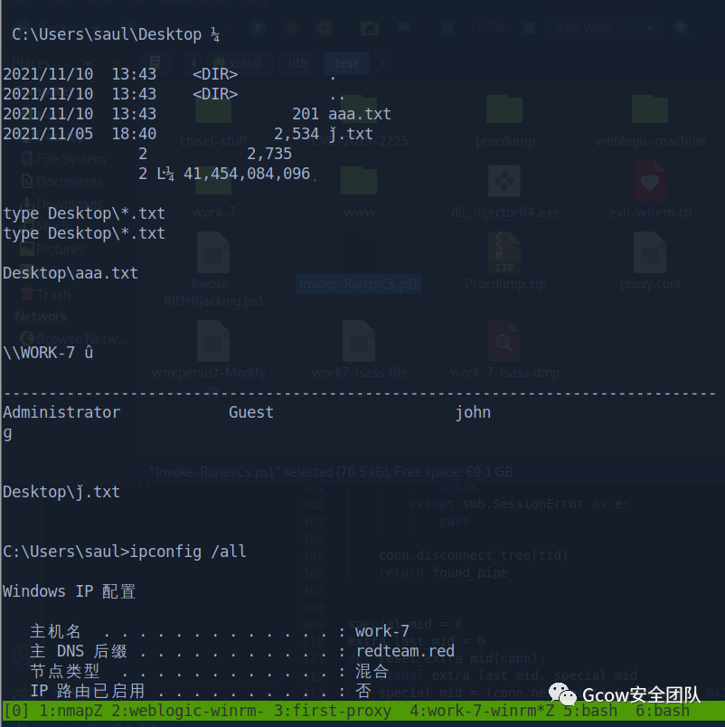 redteam.red\work-7$:f085f13639b3de3c78de926c0719d36d这个应该算work-7的flag了,来saul用户桌面