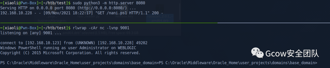 work-7 开多一个shell,上面port 9002,下面port 9001,并且上传 chisel 到 work-7