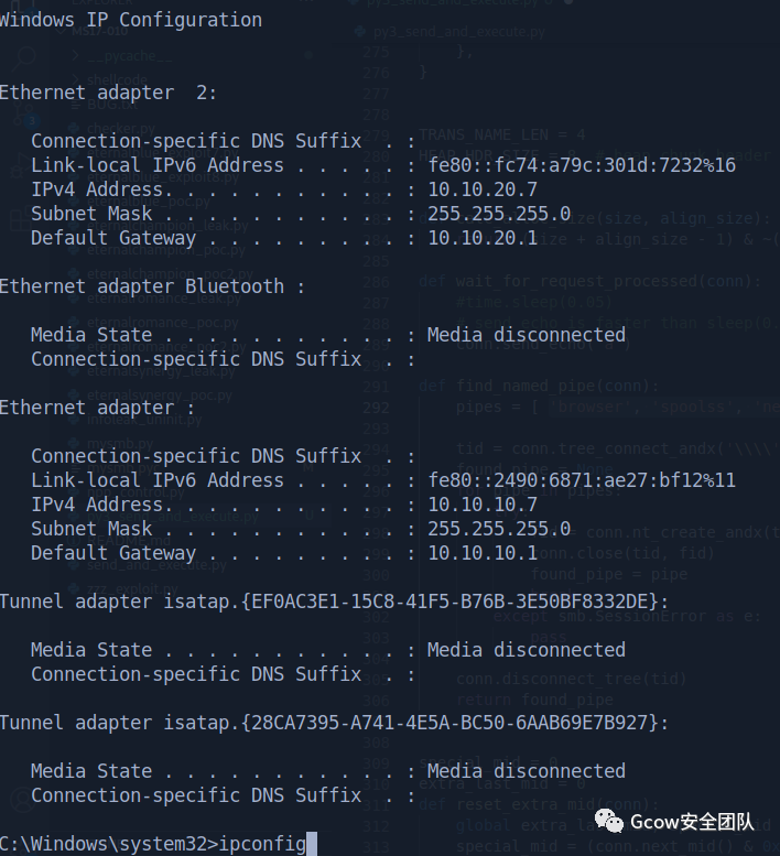 OWA.redteam.red 10.10.10.8域内两台机器,一台域控,算上自己,分别看IP