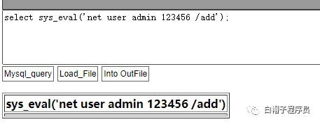 这里使用udf提权的方式,将sys_eval引入进去,然后完成执行添加账户,在加入用户组,我不能执行sys_exec不知道为啥...