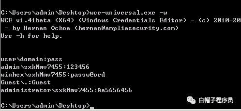 这里使用wce获取管理员明文密码,掌握到常用密码,可以进一步掌握这人的信息,大家都懂哈
