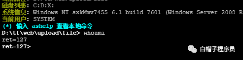 其实这里已经是system权限了,但是蚁剑和菜刀都无法执行命令,尝试了各种办法突破都未果,还是我太菜了
