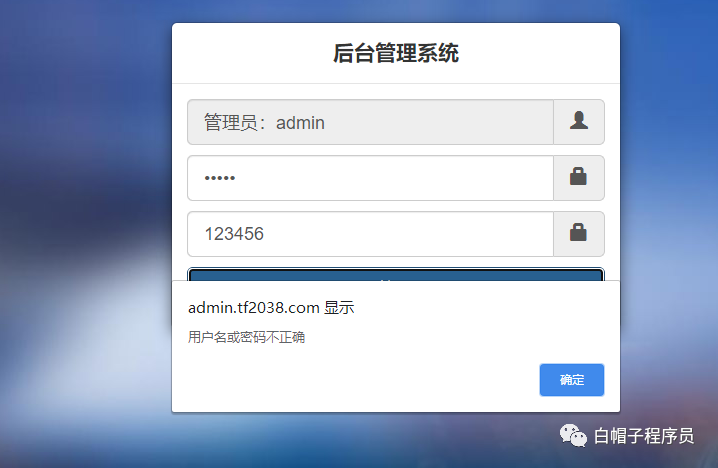 通过URL解码,然后在网站后台登录看看,既然这样提示了,那应该是验证了我的想法,所以这里判断安全码为:123456