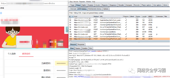 1)打开待验证的网站,注册用户(原始密码为123456a),并在页面修改密码(123456b)。BP抓到相应的POST包:
