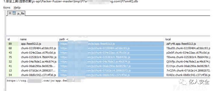 用packerFuzzer里存储的db直接拿到所有的JS的路径,当然packerfuzzer也会自动下载文本。