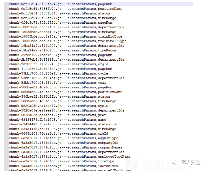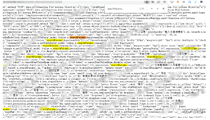 但是在一些JS里找到了searchParams字符串,这个字符串非常的可疑,很多JS文件里都有这个字符串,那么我们是不是可以批量提取一下这个字符串,然后将其变成参数呢?