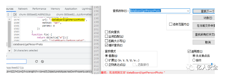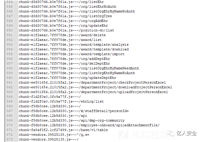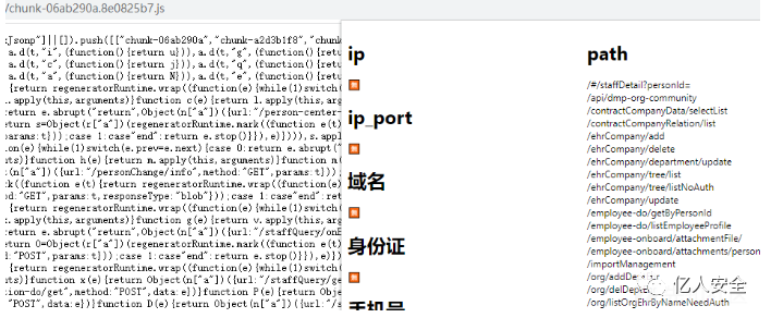 随便打开了一个chunk-xxxxxx.js,利用插件发现存在一些路径但是在F12里搜不到,也就意味着这么多个chunk我要一个个打开看,才能够测试得比较仔细。