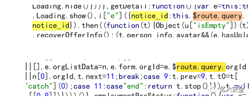 同样的,我们也可以关注"$route.query.xxxxx"这样的字符串,例如下面两图所示,可能是会是获取参数的有效方式之一。