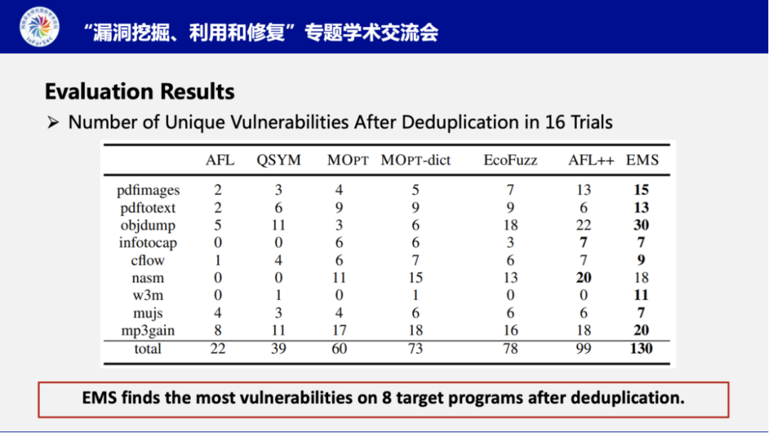 我们将对会议精彩报告进行内容回顾,本文分享的是浙江大学21级直博生梁红报告——《EMS:试验数据驱动的高效变异模糊测试系统》。