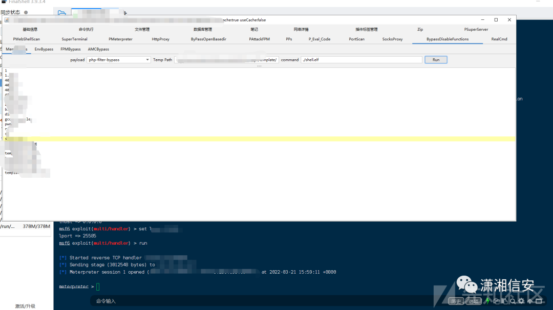 先反弹shell,用的是msfvenom生成的一个elf文件,放在目标服务器,然后运行,自动反弹shell