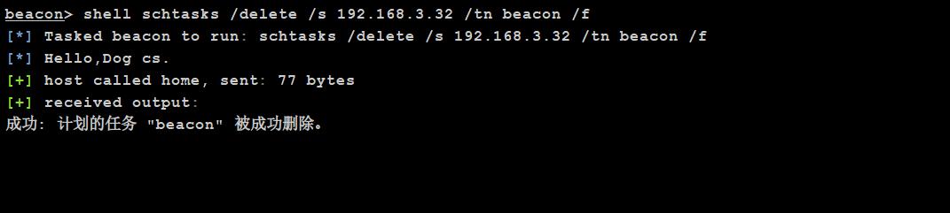 schtasks /delete /s 192.168.3.32 /tn beacon /f # 删除beacon计划任务