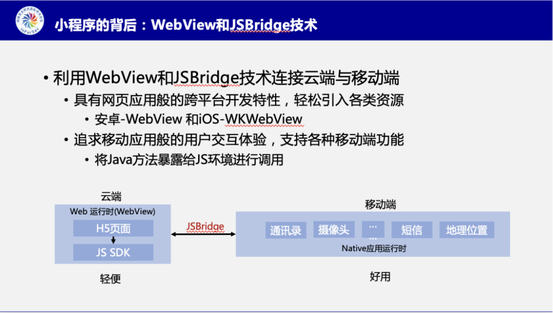 首先,张智搏博士介绍了本篇工作的研究对象—小程序是当下流行的开发生态,其用户量巨大,内容和服务也十分丰富。张博介绍到小程序生态背后离不开的关键技术—基于WebView和JSBridge技术。通过这两个技术,能够做到跨平台开发,同时还能访问各种移动端功能, 增加用户交互体验。
