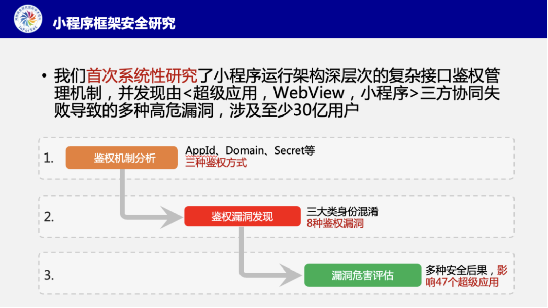 我们将对会议精彩报告进行内容回顾,本文分享的是复旦大学计算机学院张智搏博士的报告——《小程序运行架构中身份混淆安全风险分析》。