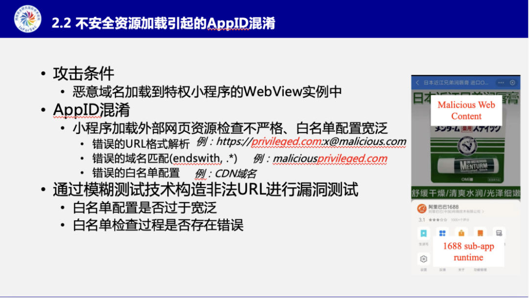 针对另外两种身份混淆,张博士也详细的阐释了他们的亮点发现。即在AppID混淆中,通过模糊测试技术对URL加载过程进行测试,并发现了三种造成混淆的原因。