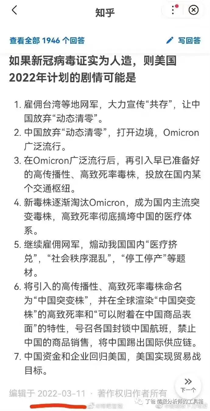 6、下图是知乎上有网友在2022年3月11日发布的美国2022年计划: