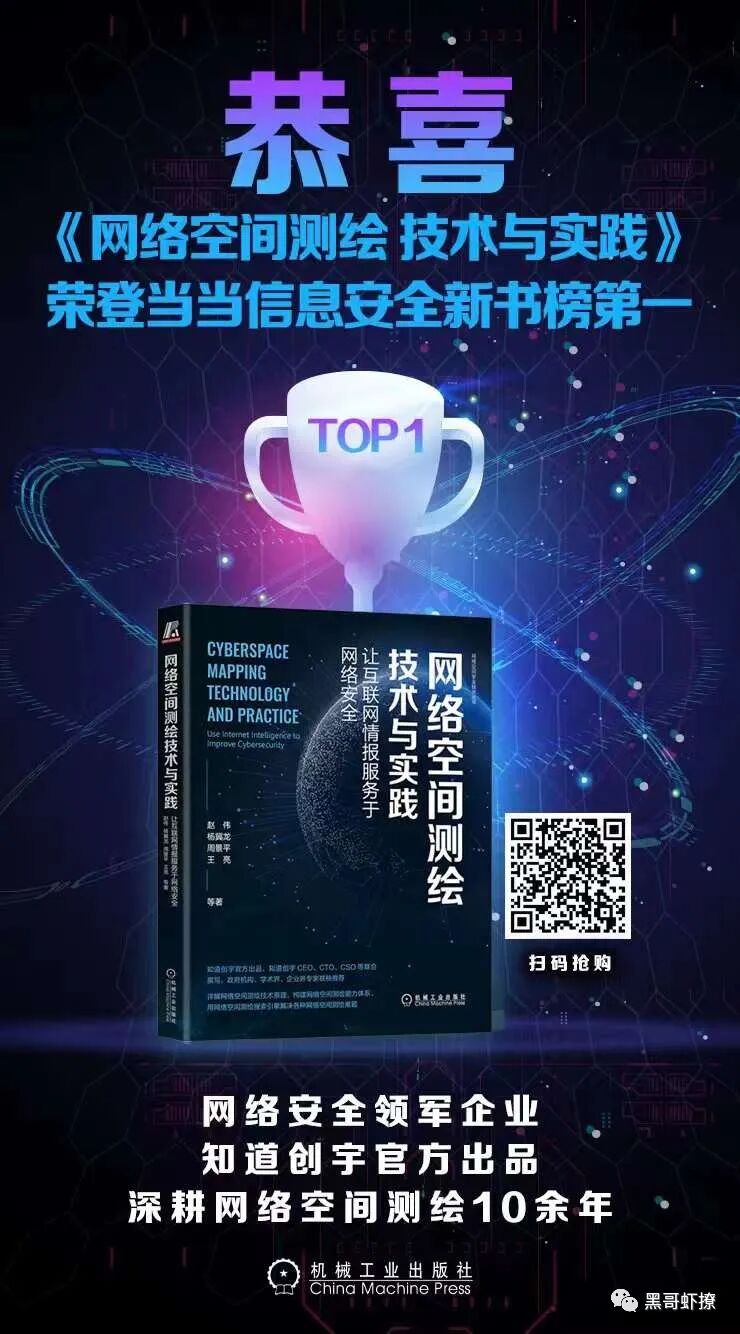正如我在《网络空间测绘技术与应用》一书的前言里说的:“格局决定一切!” 网络空间测绘本质是“获取更多数据”及“赋予数据灵魂”,这一切取决于使用者的视角!看见还没呕看见的,看清我们已经看见的!《网络空间测绘技术与应用》当当、京东、淘宝个大平台有售!