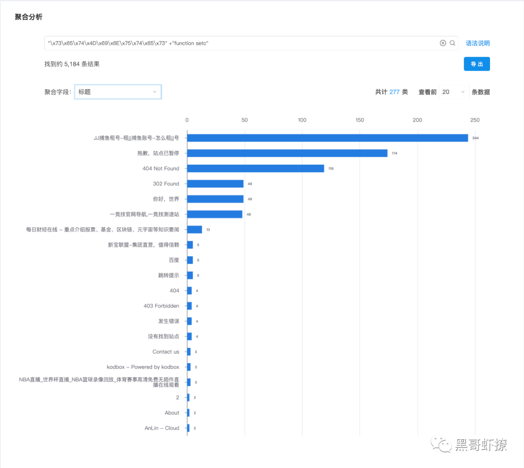 6、title聚类有比较集中的表现:title:"404 Not Found" 有2634条