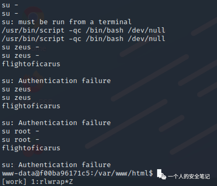但接下来容器内的权限提升失败了,提示这个密码错误。