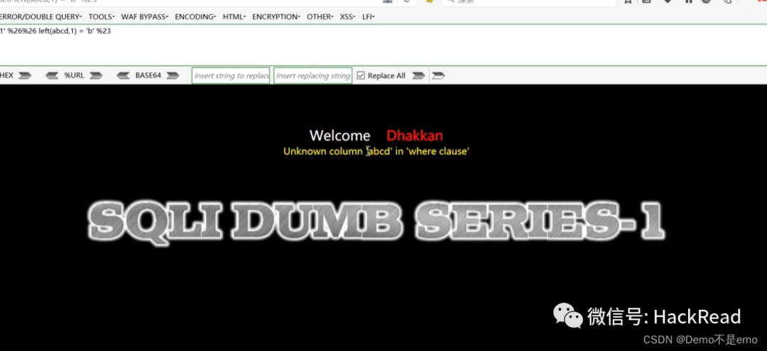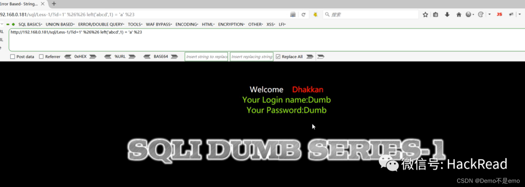 http://192.168.0.108/sql/less-1/?id=1' %26%26 left("abcd",1) = 'a' %234.取字段名绕过
