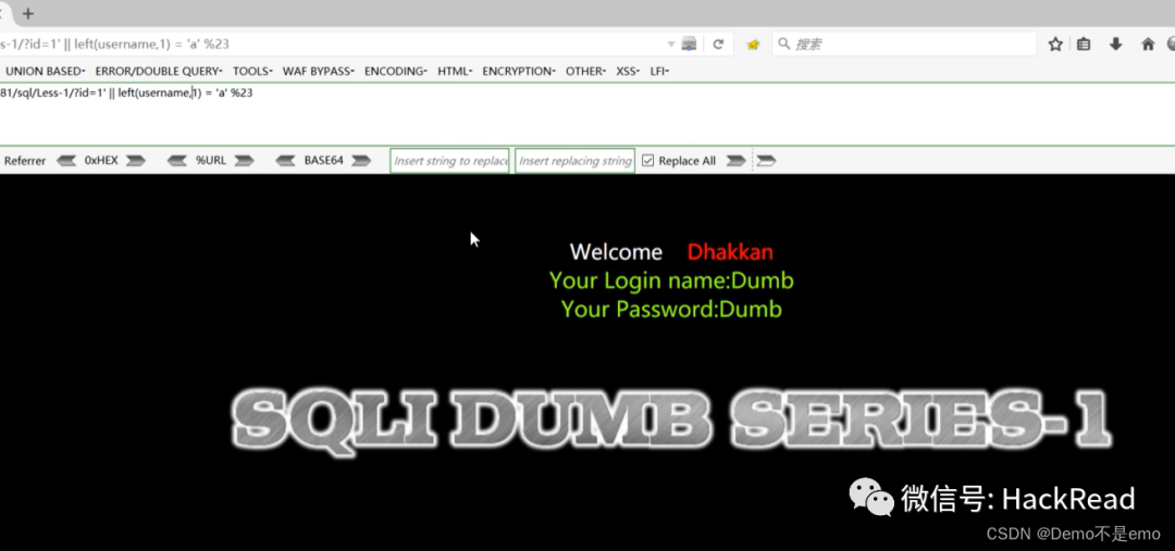 截取函数也是同理,substr()函数肯定是用的最多的,对应的也是被封的最多的,这里其实只需要将substr()函数换成left()函数,能达到一样的效果