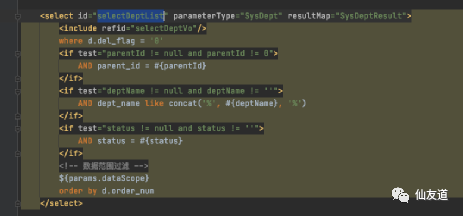 src/main/resources/mapper/system/SysDeptMapper.xml#51=> com.ruoyi.system.mapper.SysDeptMapper#selectDeptList=> com.ruoyi.system.service.impl.SysDeptServiceImpl#selectDeptList=> com.ruoyi.web.controller.system.SysDeptController#listSysUserMapper