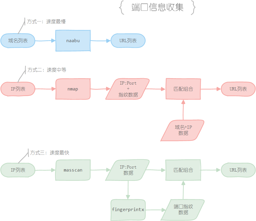 | naabu | 集成工具,传入域名列表可以直接获取数据,但是速度很慢 |