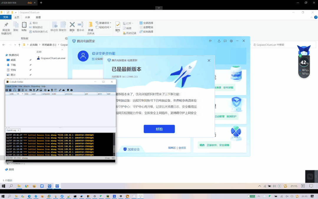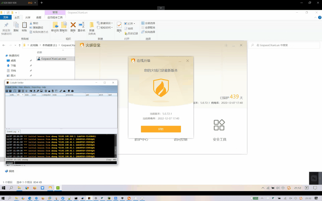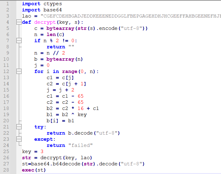 再在执行之前解密就行,杀软没有 key 也没办法知道怎么解密,所以过杀软轻轻松松。最后,因为 Python 是解释型弱类型语言,所以可以使用 exec() 函数进行内存运行这个加解密并执行 Shellcode,整体免杀过程就是这样,非常简单。