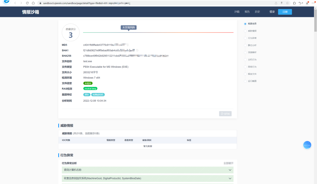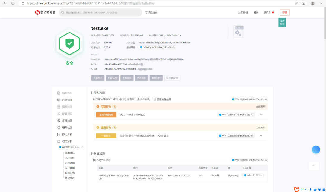 原理通过 wmic 命令来查询机器信息判断是否处于沙盒环境,注意此处不针对虚拟机,只针对沙盒,SELECT * FROM CIM_Slot 这条命令可以判断出绝大多数的沙盒。用 C++ 实现相关代码,其中优化对某恒的 win7 下的沙盒环境判断: