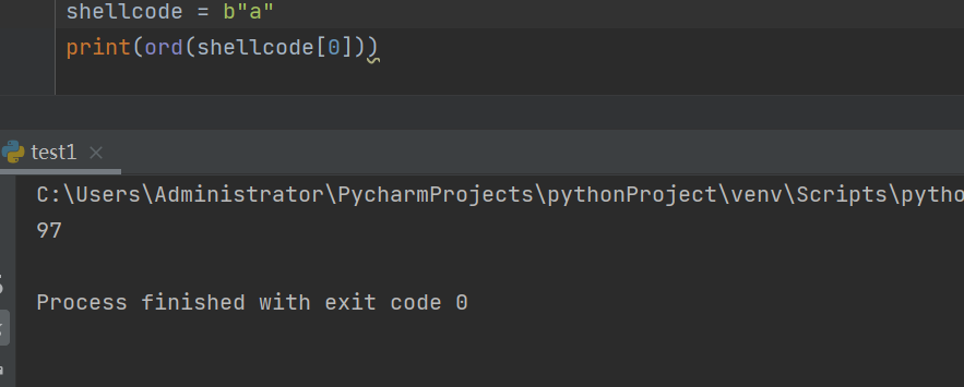 char shellcode[] = "\xfc\xfc\xfc\xfc\xfc\xfc\xfc\xfc";它是 16 进制的机器码,那么 char 类型还可以将 Shellcode 转为 ascii 码,C 语言也是会识别,这里可以用 Python 的 ord 函数,简单方便。