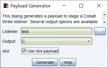 在 CS 中,attacks-packages-payload generator 选择监听端口,可以生成 C 文件。