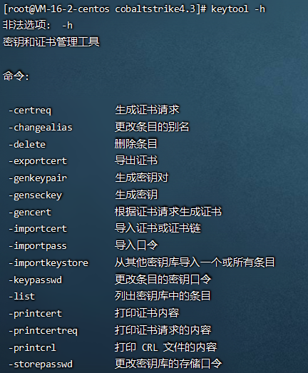 通过 keytool -h 可以看到相关的相关的生成命令,具体的自行查阅相关文章进行学习。