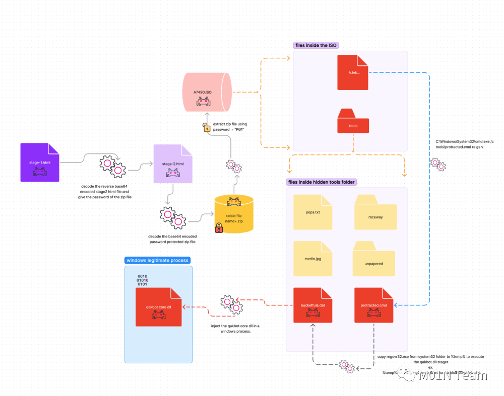 本文对QakBot在钓鱼中的技术的再改进进行了一定的分析,是值得参考的防御规避手法,可以借此举一反三,加强规避效果。同时,对于防守方而言,也是可参考的检测点。