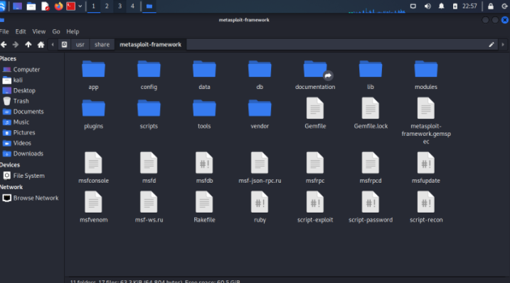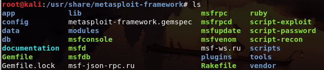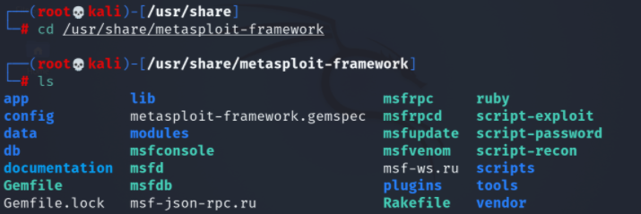 kali终端中进入/usr/share/metasploit-framework目录