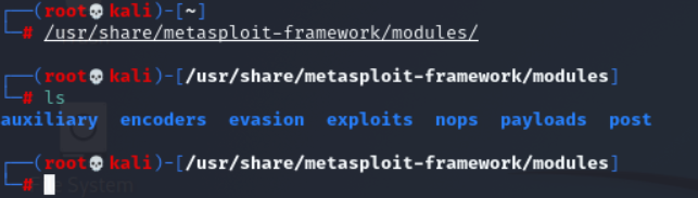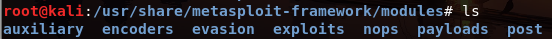 (3)exploits:/usr/share/metasploit-framework/modules/exploits目录下全是攻击时的利用代码