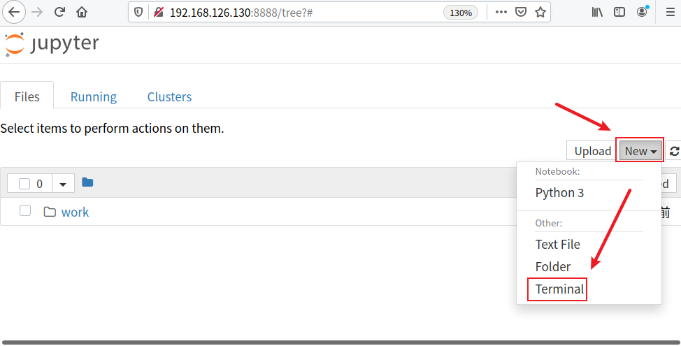 cd /vulhub/jupyter/notebook-rcedocker-compose up -d运行后,访问http://your-ip:8888将看到Jupyter Notebook的Web管理界面,并没有要求填写密码。