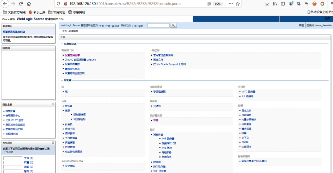 cd vulhub/weblogic/CVE-2020-14882sudo docker-compose up -d攻击者可以构造特殊请求的URL,即可未授权访问到管理后台页面: