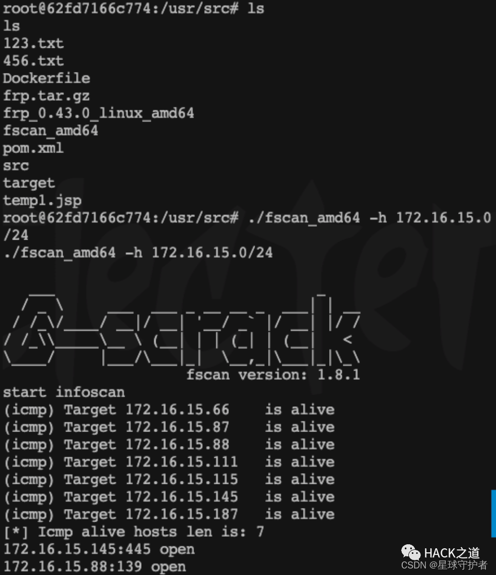 通过上传fscan,扫描发现存活主机