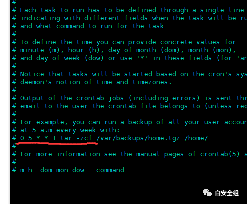 crontab -e根据上面划线地方介绍最左边是0-59分钟