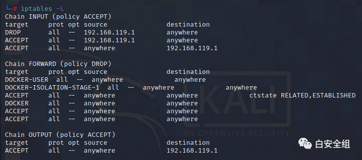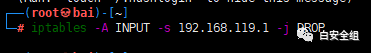 iptables -A INPUT/OUTPUT -s/d [目标ip] -j ACCEPT/DROP//封闭119.1地址对本机的访问