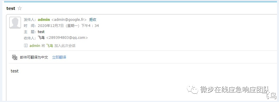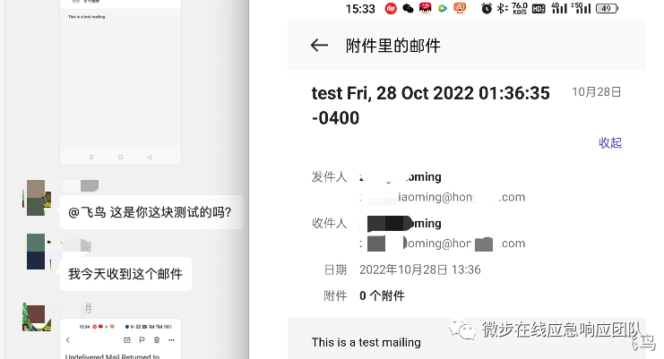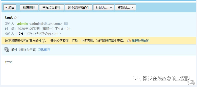 同时经过微步在线应急响应团队排查,邮件服务器没有相关的邮件收发记录。