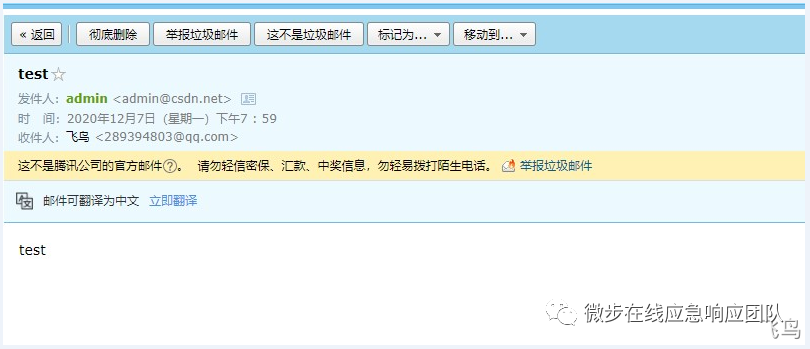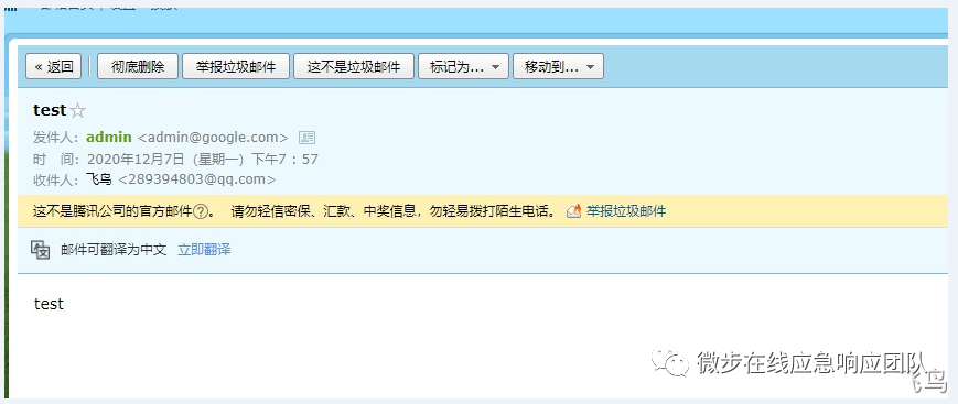 前面说过,当收件人收到这种配置有软失败的时候,处置策略是放行或者标记为垃圾邮件,即使标为垃圾邮件也比收不到好,拿大厂测试一下。