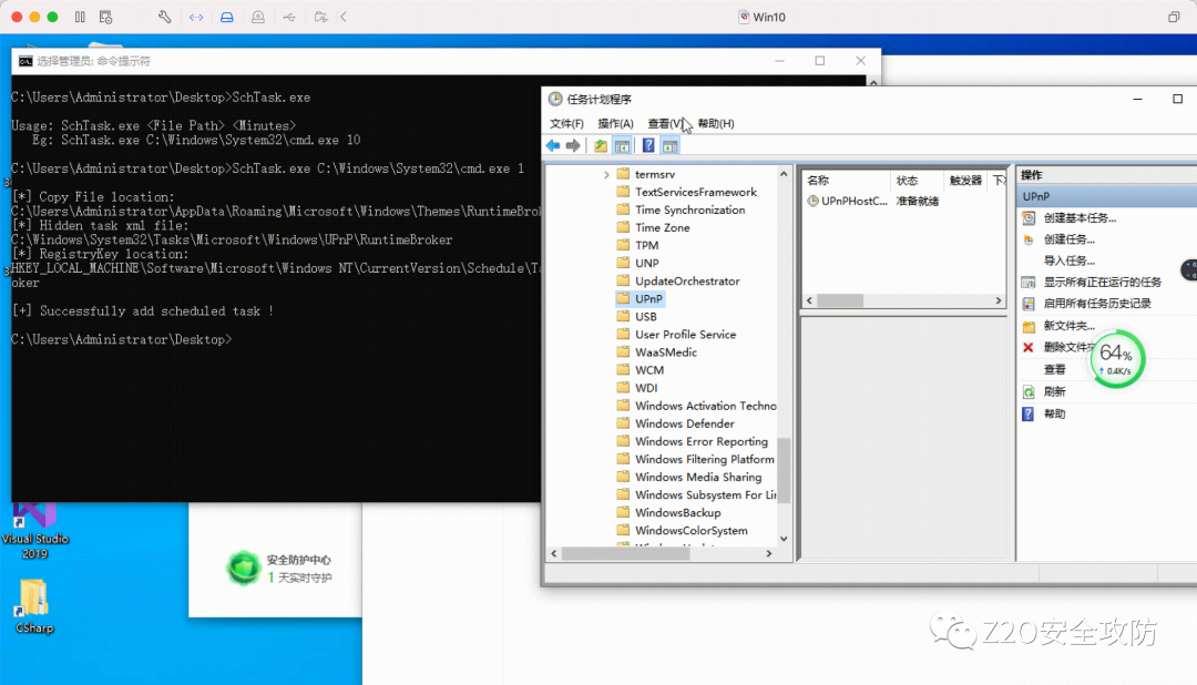计划任务的创建没有放在根路径下,而是创建在\Microsoft\Windows\UPnP\ 路径下,达到隐匿。